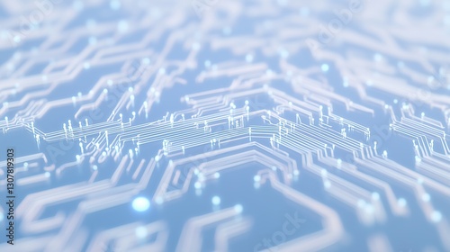 Futuristic blue circuit board with glowing connections and shallow depth of field