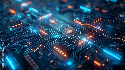 Futuristic Blue Circuit Board with Glowing Digital Transmission Lines