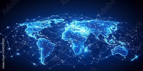 Futuristic Blue Digital World Map with Network Connections and Lights