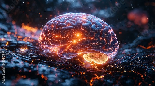 Futuristic Brain Concept with Glowing Neurons in a High-Tech Abstract Environment