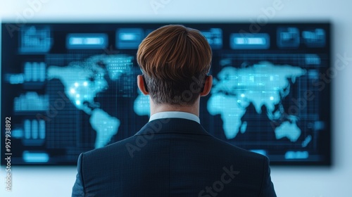 Futuristic Business Forecasting and Planning in Transparent Holographic Office Design with Copy Space for Text