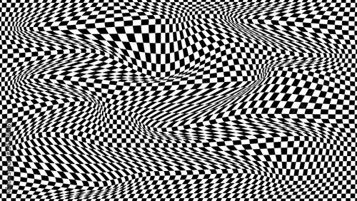 Futuristic checkerboard wave. Abstract vector wave with moving squares. Chess board black and white background.