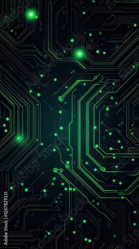 Futuristic Circuit Board Pattern with Green Glow on Dark Background