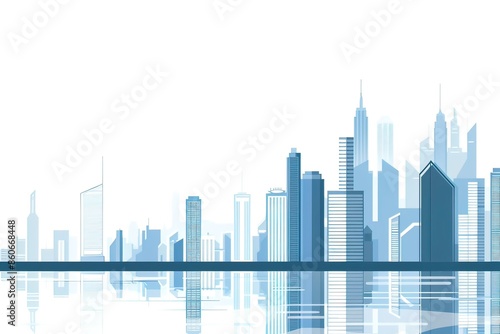 Futuristic City Skyline in Soft Blue Tones with Misty Effects. Minimalist and Abstract Architectural Design of Modern Skyscrapers Blending into a Bright White Background, Representing Urban Developmen
