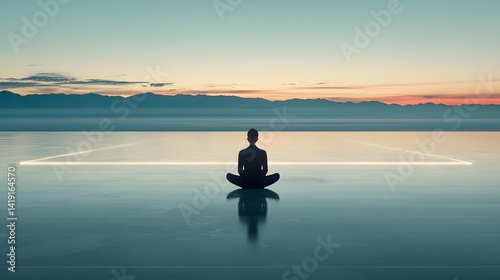 Futuristic city skyline stretching towards an infinite horizon with neon lights glowing in the twilight creating a mesmerizing and technologically advanced urban landscape