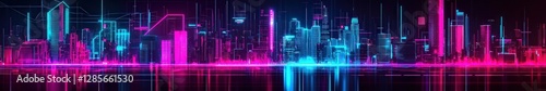 Futuristic City Skyline with Neon Lights and Digital Effects