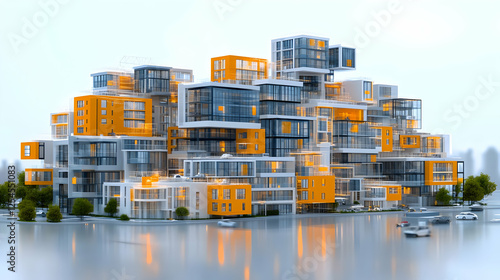 Futuristic city waterfront complex