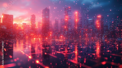 Futuristic Cityscape at Night with Neon Lights Generative AI