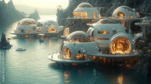 Futuristic Cityscape: Dome Homes on a Coastal Cliff