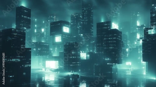 Futuristic Cityscape: Towering Buildings in a Vibrant Metropolis