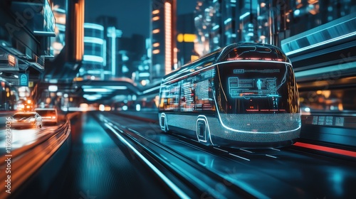Futuristic Cityscape with Autonomous Bus