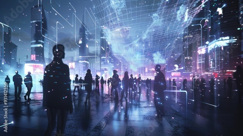 Futuristic Cityscape with Digital Network