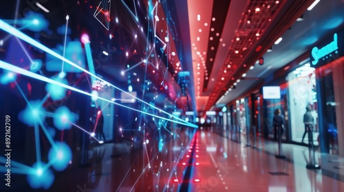 Futuristic Cityscape with Digital Network Display