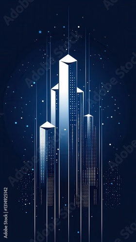 Futuristic Cityscape with Geometric Skyscrapers and Starry Night Sky
