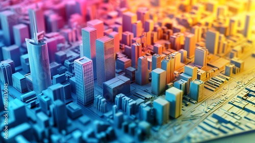 Futuristic cityscape with skyscrapers and roads symbolizes sustainable urban planning.