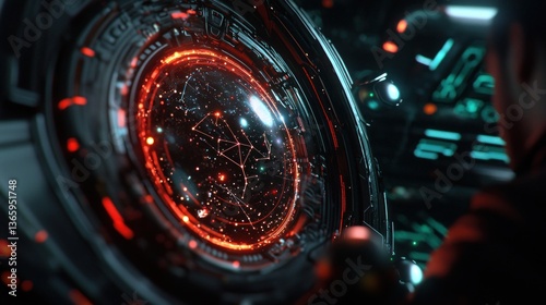 Futuristic control panel displaying star constellations in a sci-fi environment with glowing elements