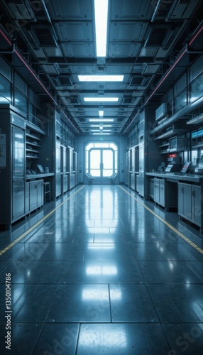 Futuristic Corridor with Sleek Lighting and Modern Design Elements