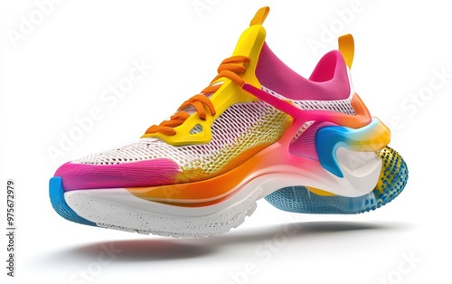 Futuristic crazy modern design colored sneakers isolated on clear white background photo