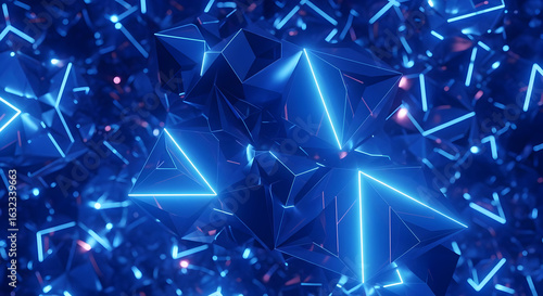 Futuristic Crystalline Formation with Luminous Blue Neon Edges and Bokeh Highlights.
