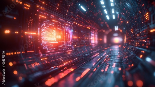 Futuristic Cyber Tunnel with Digital Lights Generative AI