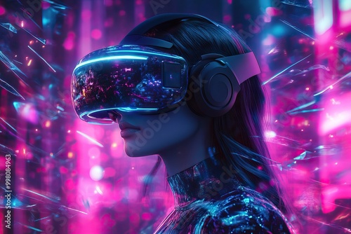 Futuristic cyber world with VR headset and Video Game. AI generated image