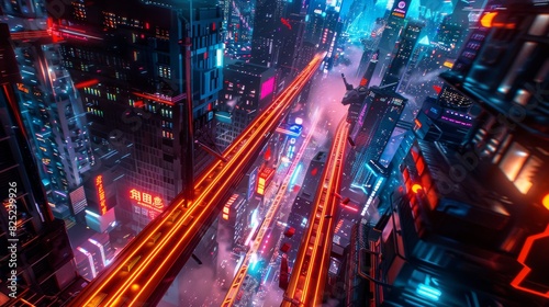 Futuristic cyberpunk city with glowing neon lights for technology or sci-fi designs