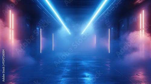 Futuristic Cyberpunk Room with Neon Blue Lights and Foggy Atmosphere