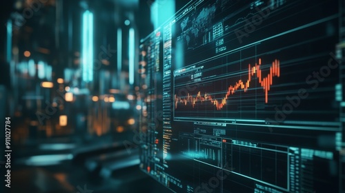 Futuristic Cyberpunk Virtual Stock Market with Dynamic 3D Animated Trading Charts