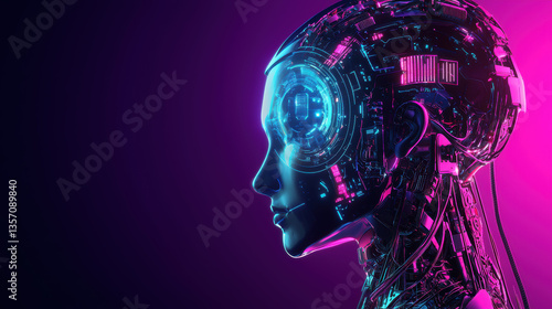 futuristic cyborg silhouette with intricate mechanical details, glowing vibrant colors, evokes sense of advanced technology