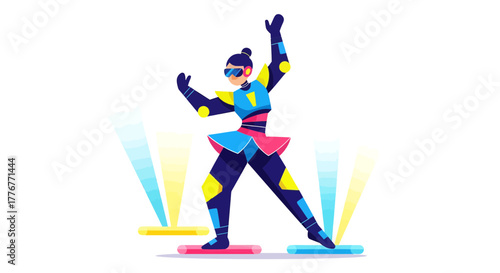 Futuristic Dancer Performing With Technology On Spotlight Stage And Artistic Background