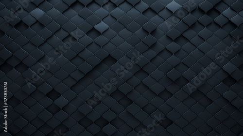 Futuristic, Dark 3D background, with an Arabesque block structure. Wall texture with a 3D tile pattern. 3D Render