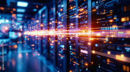 Futuristic Data Center Infrastructure with Brightly Glowing Network Cables