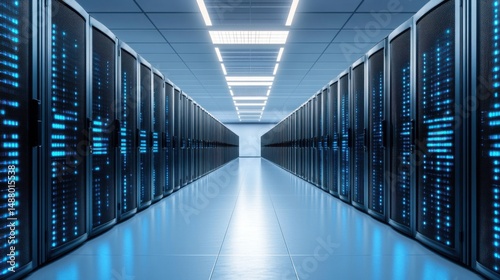 Futuristic Data Center with Illuminated Server Racks and Modern Technology Design