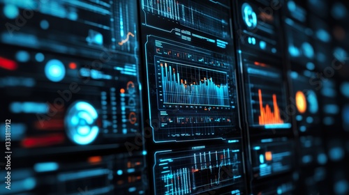Futuristic data wall, digital displays