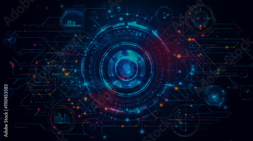 Futuristic digital background representing technology, AI, data, audio, and graphics