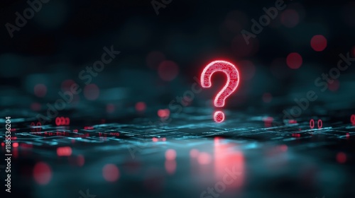 Futuristic Digital Background with Glowing Question Mark Symbol Representing Inquiry and Uncertainty in Modern Technology and Data Analysis Concepts