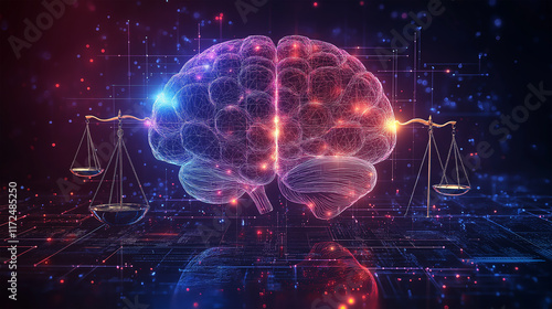 Futuristic Digital Brain Balancing Justice Scales in a Cybernetic World