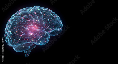 Futuristic Digital Brain with Cosmic Elements and Glowing Lines
