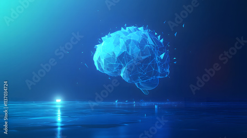 Futuristic Digital Brain with Neural Network and Glowing Connections on Dark Background