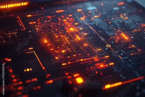 Futuristic Digital Circuit Board with Glowing Lines and Patterns