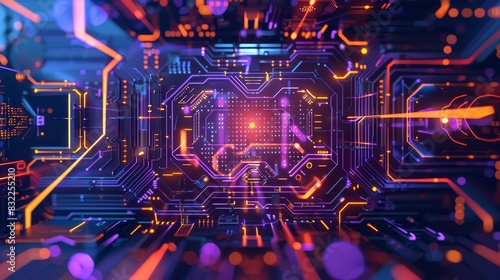 Futuristic digital circuit board with glowing neon lights, representing advanced technology and high-speed connections.