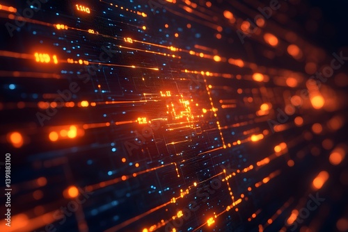 Futuristic Digital Circuit Board with Glowing Orange and Blue Lights