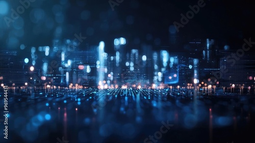 Futuristic digital cityscape with glowing elements and vibrant lights, illustrating advanced technology and connectivity.
