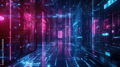 Futuristic Digital Corridor with Neon Lights in Vibrant Colors