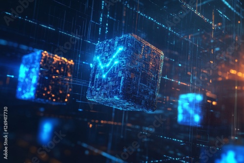 Futuristic Digital Cubes with Glowing Blue Lights in Abstract Space