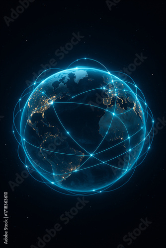 Futuristic Digital Earth with Global Blue Network Connections