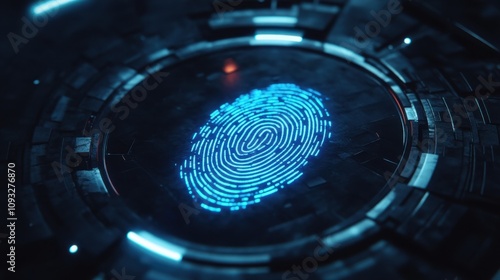 Futuristic Digital Fingerprint Design Representing Security and Identity Verification in Technology with Neon Blue Highlights on a Dark Background
