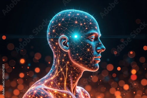 Futuristic Digital Human Portrait with Glowing Neural Connections