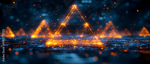 Futuristic digital illustration showcasing glowing orange triangles on a dark background with a high-tech feel.
