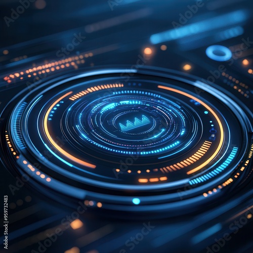 Futuristic digital interface with colorful circular elements and technological patterns, ideal for tech and innovation themes.